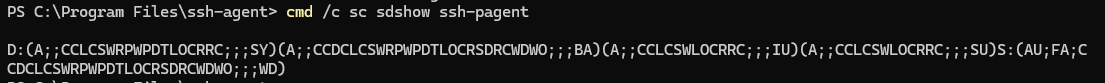 1 | cmd /c sc sdset ssh-pagent "<SDDL>" |