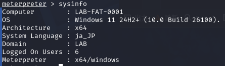 binPathを改ざんし、不正なDLLを実行するサービスとして再構成する。 - サービスを再起動すると、Meterpreterが管理者権限で起動し、攻撃者のリスナーへリバースシェルを返す。